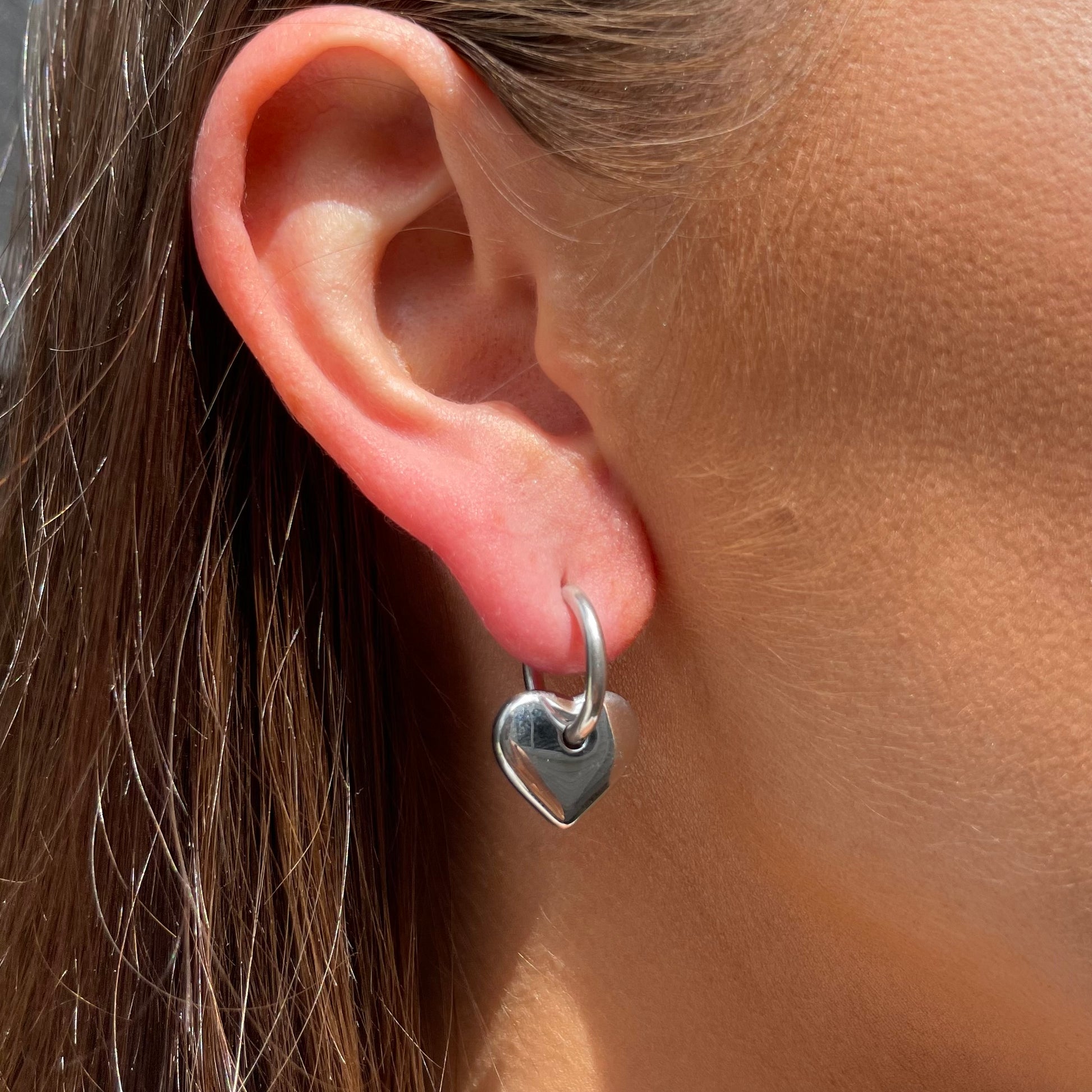 Silver heart huggies